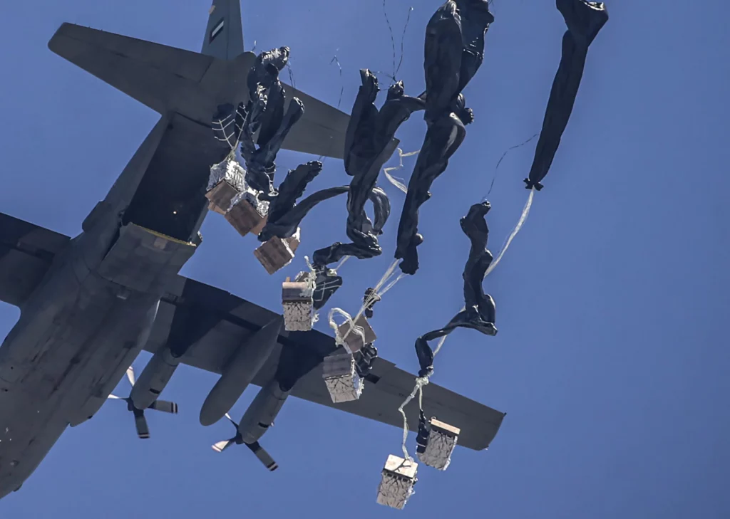 Esta acción, realizada en cooperación con la Organización Benéfica Hachemita de Jordania, forma parte de los esfuerzos de Jordania y Emiratos, que ayer lanzaron 17 toneladas de ayuda y el domingo 25 en varios lanzamientos.