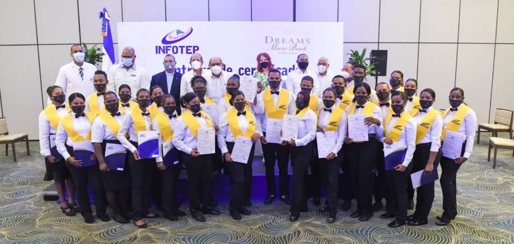 SANTO DOMINGO.- Unos 26 participantes de comunidades de la zona de Macao, que concluyeron cursos del Instituto Nacional de Formación Técnico Profesional (INFOTEP) en bar y restaurantes, fueron contratados de inmediato por el hotel Dreams Macao Beach Punta Cana.