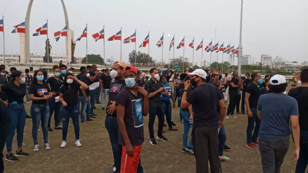 SANTO DOMINGO.- La Plaza de la Bandera vuelve a ser escenario para que los vestido de negro protesten en contra del gobierno, esta vez alertando la supuesta intención de infundir temor a la población con el coronavirus, para que no acuda a votar.