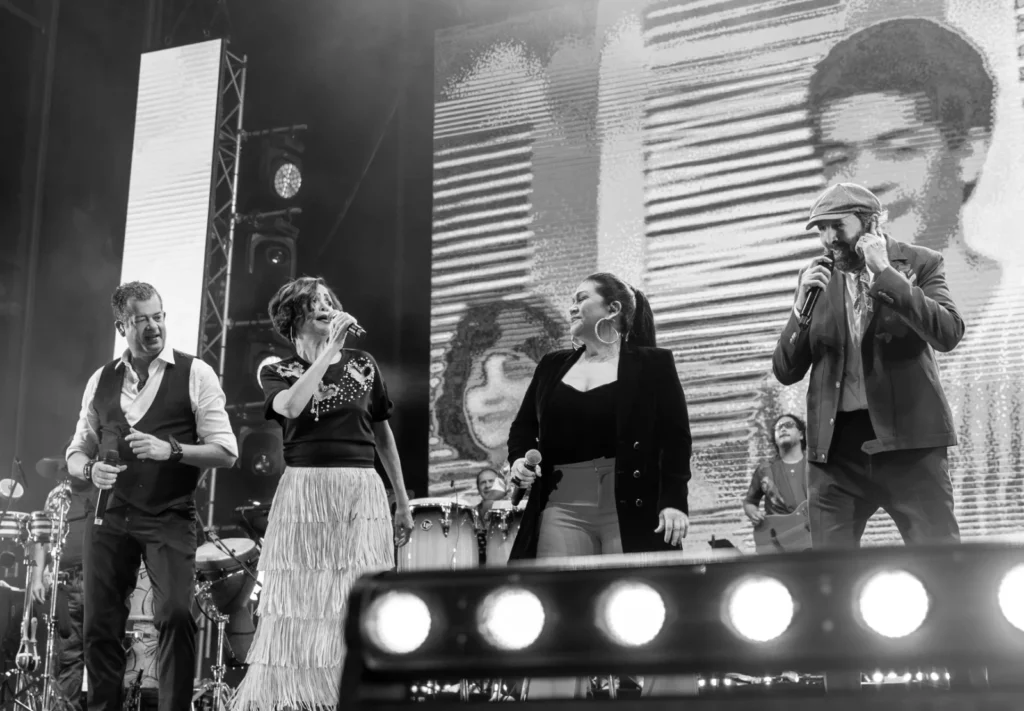 Santo Domingo.- Alrededor de 50 mil personas asistieron al concierto Entre el mar y palmeras, de Juan Luis Guerra y 440, realizado en el Estadio Olímpico, en el que celebró sus 40 años de trayectoria artística, junto a importantes invitados, entre ellos, Maridalia Hernández y Mariel Mercado, quienes fueron parte de la fundación de esta orquesta.