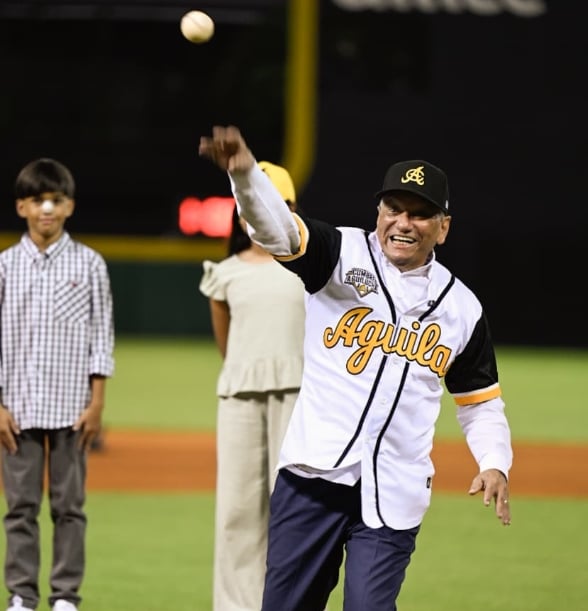En Santiago, el administrador del Banreservas, Leonardo Aguilera, hizo el lanzamiento de honor previo al juego de los Gigantes del Cibao y las Águilas Cibaeñas.