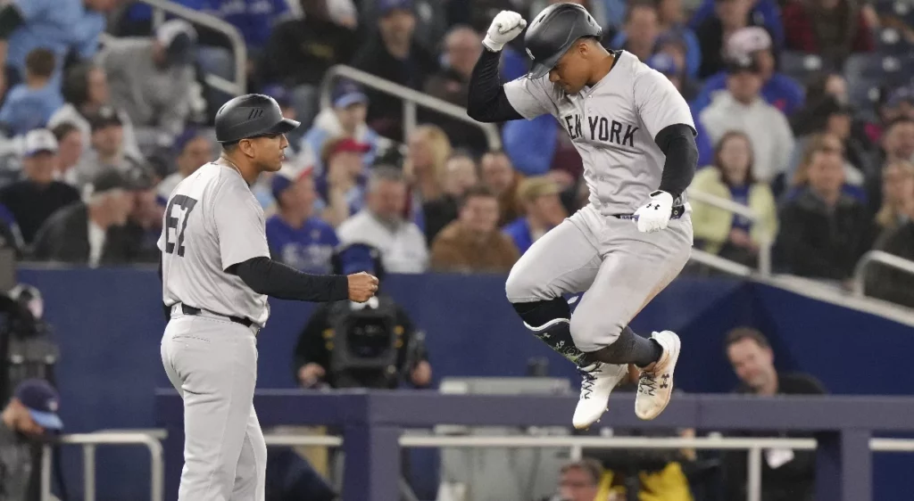 Yanquis: Juan Soto bateó de 3-3 y recibió dos boletos para embasarse las cinco veces que fue al plato, incluyendo un jonrón (4), un doble, con una anotada y dos impulsadas (.352)…Con esas impulsadas llegó a 500 en su carrera…Austin Wells, 2-0, con un boleto (.097).