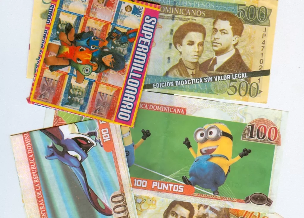 Dicha entretención tiene además como prerrogativa negativa el uso de varias denominaciones de billetes falsos similares a los que emite el Banco Central , que advierten “ Edición didáctica sin valor legal”.