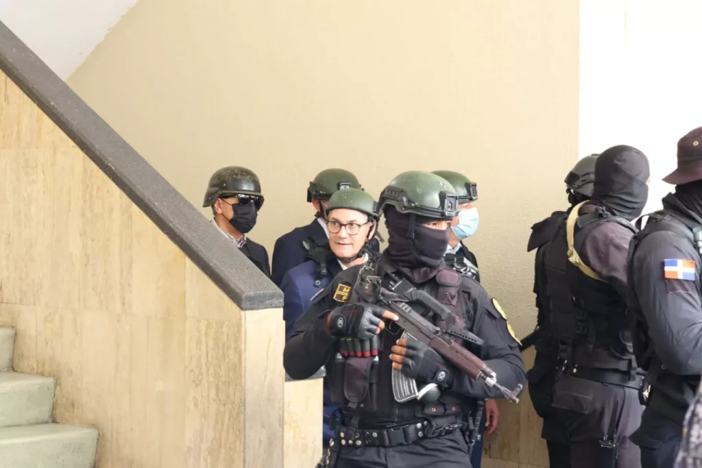 Los miembros del Ministerio Público, encabezado por la directora de Persecución Yeni Berenice Reynoso y el titular de la Pepca, Wilson Camacho, se encuentran en la sala del tribunal donde se dará continuidad al proceso.