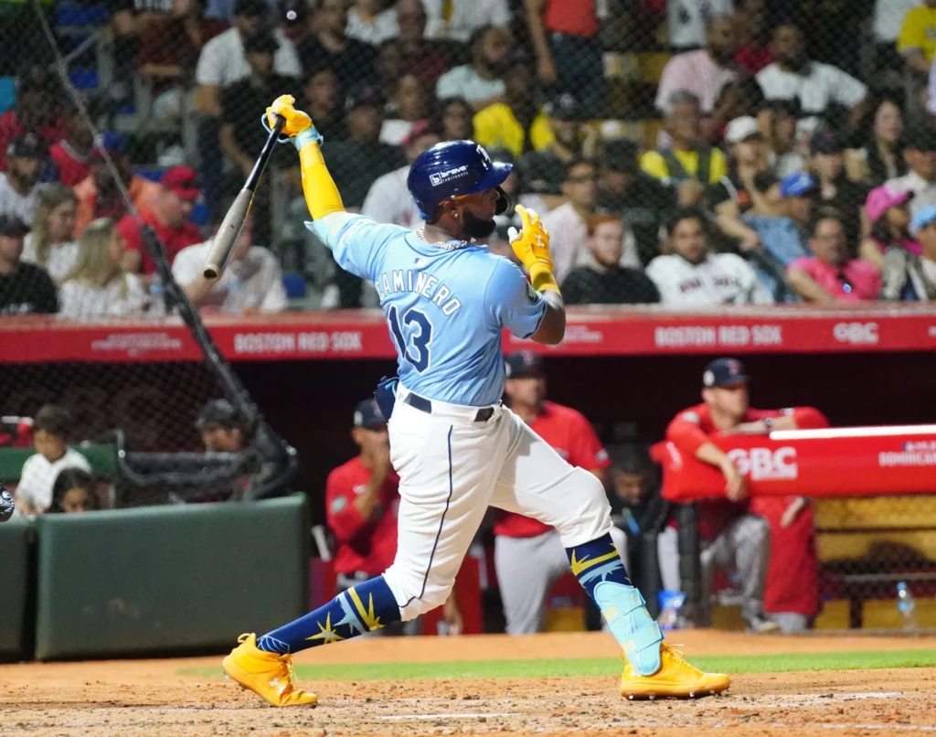 A tan sólo 21 años, el dominicano Junior Caminero, de Tampa Bay, demuestra estar muy adelantado a la ofensiva. Es increíble que en su primera temporada completa en Grandes Ligas encabece los principales encasillados ofensivos en su equipo.