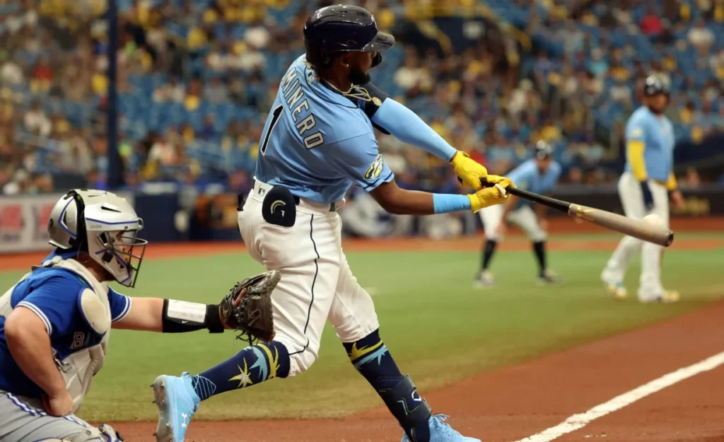 Tampa, Florida.-El cañonero dominicano de los Rays, Junior Caminero, es reconocido como el jugador más prometedor en una de las herramientas más emocionantes del deporte: poder, de acuerdo a MLB Pipeline.
