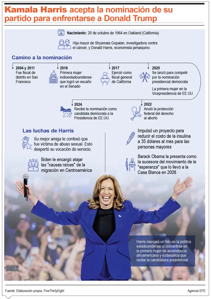 La vicepresidenta hizo historia al convertirse en la primera mujer negra y de origen del sudeste asiático en ser candidata presidencial de uno de los dos principales partidos políticos de Estados Unidos.