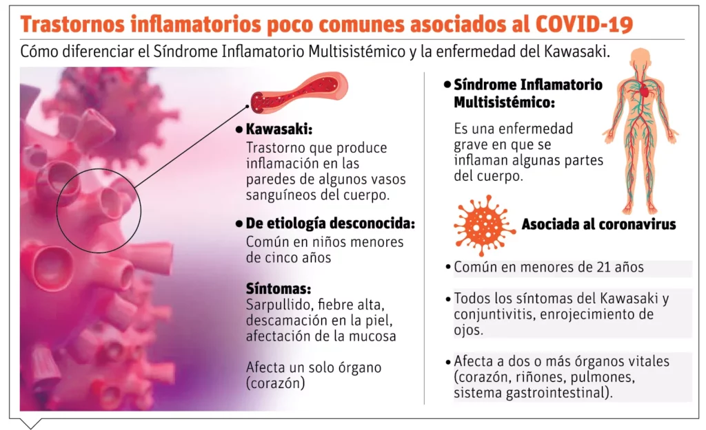 SANTO DOMINGO.-Los procesos inflamatorios asociados a la infección del COVID están provocando enfermedades raras como el síndrome inflamatorio multisistémico en niños con la enfermedad del Kawasaki.
