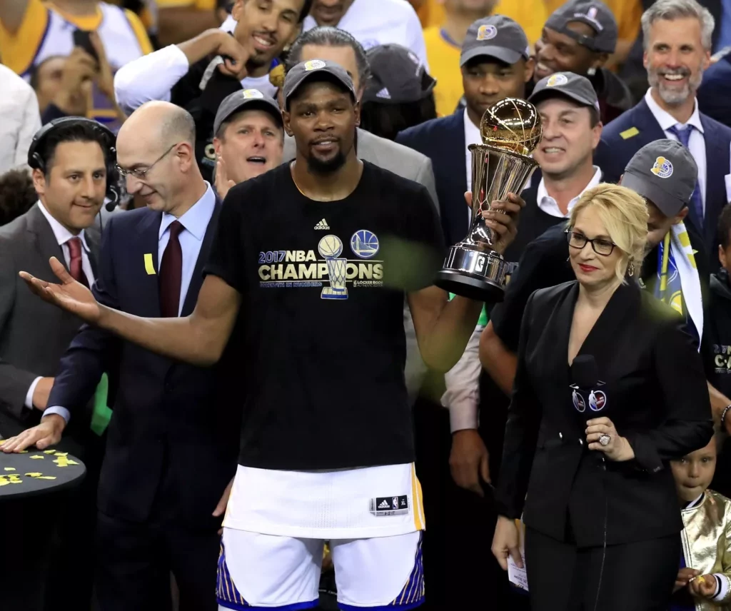 Criticado y escrutado por cada aspecto de esa decisión, el lunes Durant levantó triunfante los brazos y el trofeo de Jugador Más Valioso de la final de la NBA, radiante en su estreno como campeón de la liga, justo como había planeado. Abrazó a su madre Wanda varias veces. Y también a Curry.