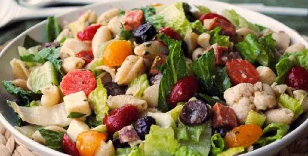 En un tazón grande, combine los primeros nueve ingredientes y mézclelos bien. Cubra y refrigere por lo menos 4 horas antes de servir, de esta forma la ensalada estará más fresca.