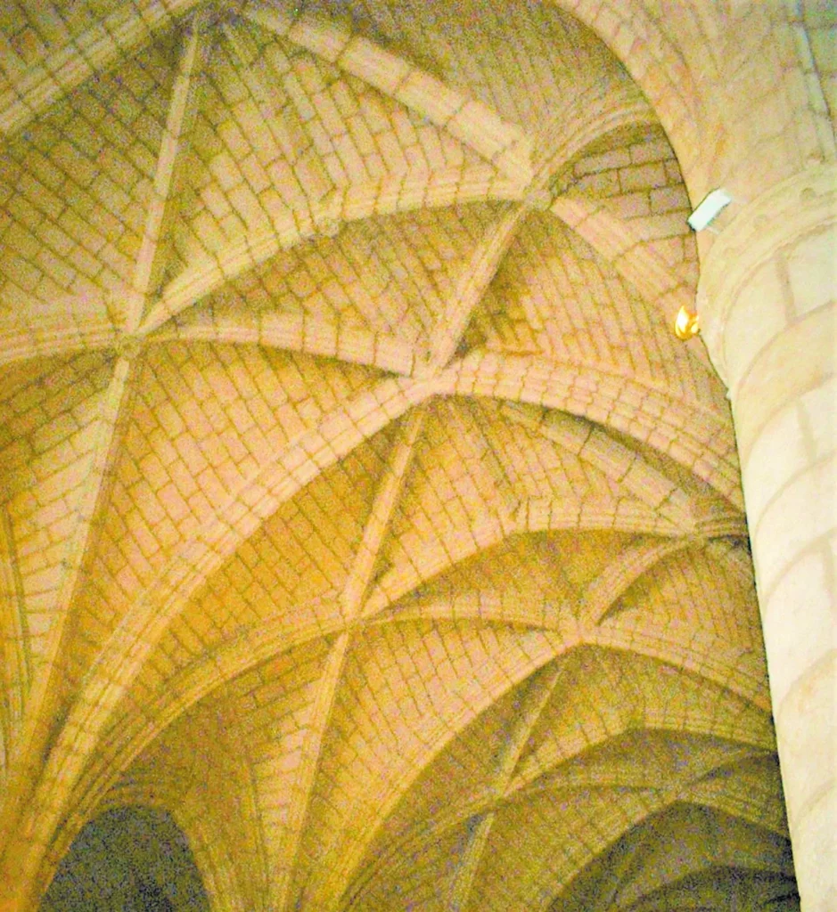 La bóveda de la misma, con nervaduras ornamentales, es casi una cubierta plana, en donde aun pueden observarse trazas de su antigua ornamentación pictórica.
