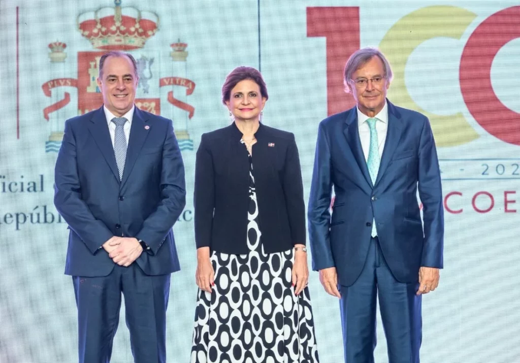 SANTO DOMINGO.-La Cámara Oficial de Comercio de España en República Dominicana (Camacoesrd) ofreció una cena de gala para celebrar sus 100 años en la República Dominicana, que contó con la presencia de la vicepresidenta Raquel Peña, así como de representantes de diversos ministerios, cuerpo diplomático acreditado en el país y miembros de la Cámara Española.