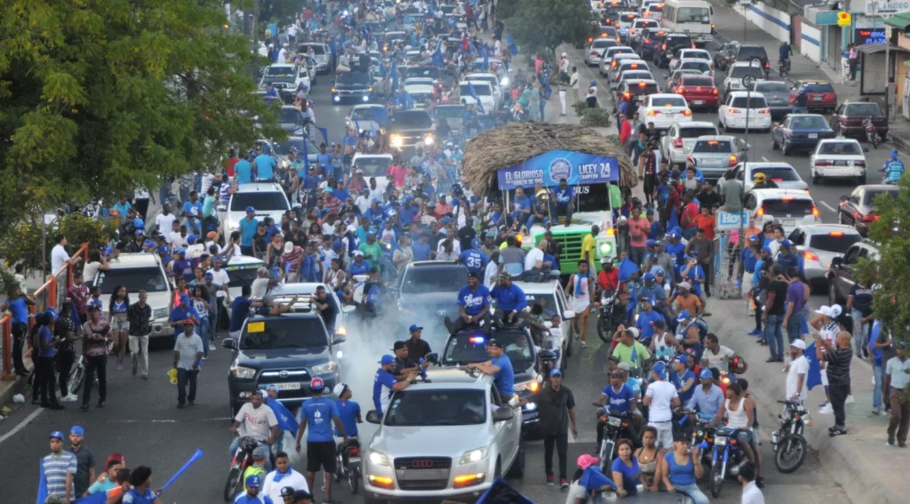 La caravana del Licey tiñe de azul el Distrito Nacional