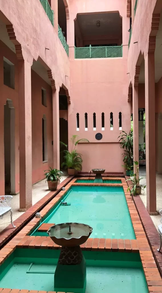 Este modelo arquitectónico pretendió inspirarse en el magnífico palacio de la Alhambra, en Granada, por lo cual el patio interior de la vivienda nos recuerda los espejos de agua y surtidores, tan importantes en los climas cálidos.
