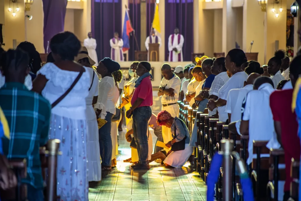 Los sacerdotes y los feligreses clamaron por el fin de la crisis, agravada desde el 29 de febrero cuando bandas armadas se unieron y sembraron el terror para pedir la dimisión del primer ministro, Ariel Henry, actualmente en Estados Unidos y que ha aceptado renunciar en cuanto se oficialice un consejo presidencial de transición.