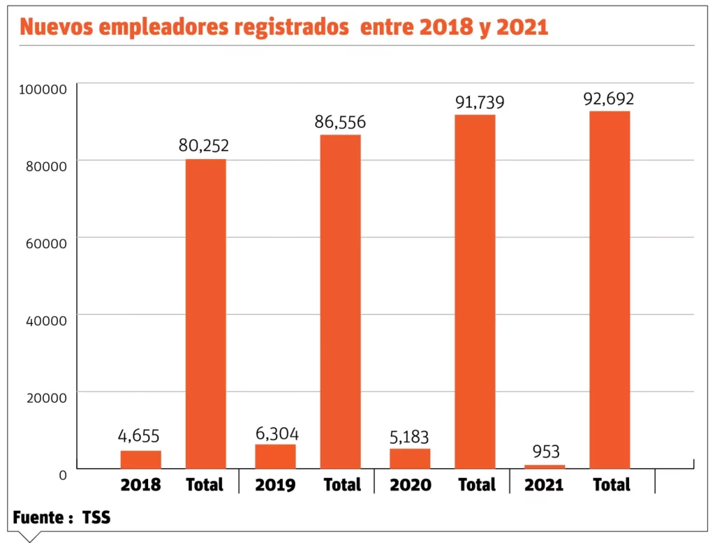 Datos de la Tesorería de la Seguridad Social indican que en ese año anterior al inicio de la pandemia se registraron 5,183 nuevas unidades de negocios, lo que representa 4,230 más que las que se crearon entre febrero 2020 y febrero 2021.