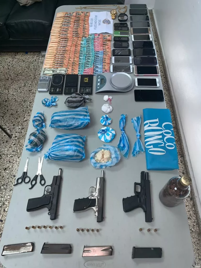 De igual forma, fueron incautadas tres pistolas calibre 9mm, cuatro cargadores y 15 cápsulas, cinco balanzas para pesa drogas, 20 celulares de diferentes marcas y modelos, así como también cuatro motocicletas.