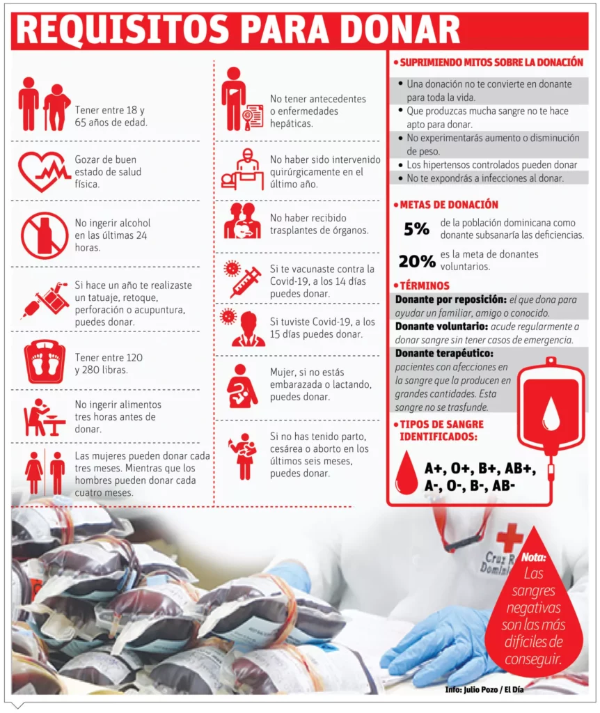 La encargada administrativa de la Cruz Roja Dominicana, Lucresia Rosario, explicó que previo a la pandemia solían recibir a instituciones del Estado y centros educativos, los cuales motivaban a sus internos a donar. “Tras la pandemia, eso desapareció totalmente, y en estos momentos estamos muy por debajo de los límites deseados”, dijo Rosario.