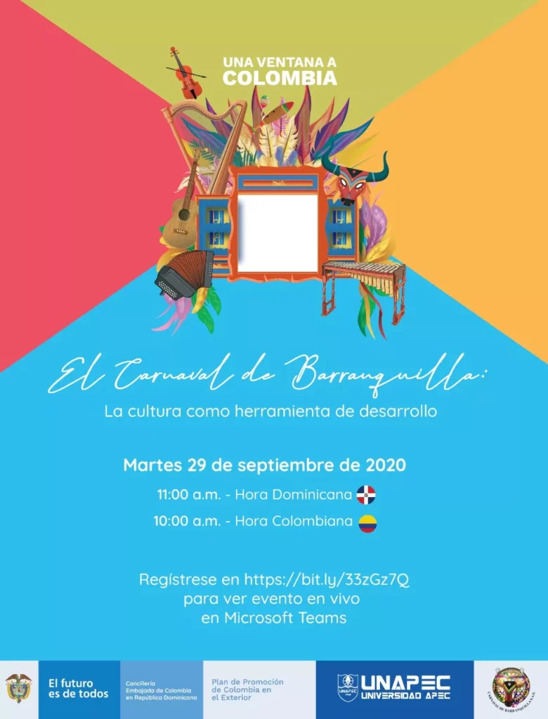 La Embajada de Colombia ante la República Dominicana junto a la Universidad APEC, llevarán a cabo el primer conversatorio virtual: "El Carnaval de Barranquilla: la cultura como herramienta de desarrollo".