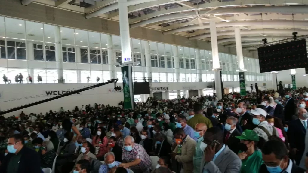 El acto es encabezado por el expresidente Leonel Fernández, presidente de la Fuerza del Pueblo. El lugar luce abarrotado a su máxima capacidad.