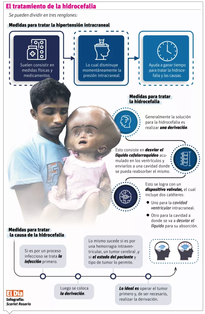 La galena añade que en el caso de la hidrocefalia, esto se produce cuando hay un aumento de líquido más allá de la cantidad que el cráneo puede aguantar y manejar. “Cuando esto se produce el paciente puede presentar cefaleas (dolor de cabeza, siendo este el síntoma o signo más frecuente apareciendo casi en un 85 % de los pacientes), náuseas y vómitos (los cuales suelen ser en proyectil (dígase de un vómito que es expulsado a muy elevada presión), alteración del estado de conciencia (desmayos), convulsiones (que pueden ser parciales) cuando sólo se mueve un brazo o una pierna por ejemplo, o tónico-clónicas completas, (cuando abarcan todo el cuerpo)”, comenta la médica.