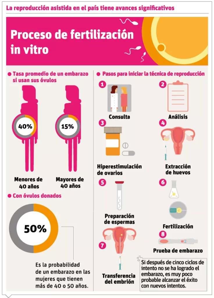 Agrega: “La reproducción asistida en un sentido amplio implica la intervención médica en el proceso reproductivo, es decir, cualquier tratamiento para la fertilidad. Sin embargo, este término se aplica más bien a técnicas específicas que se dividen, según el grado de complejidad, en baja y alta, como la inseminación artificial, la fertilización “in vitro” y la inyección intracitoplasmica de espermatozoide (ICSI)”.