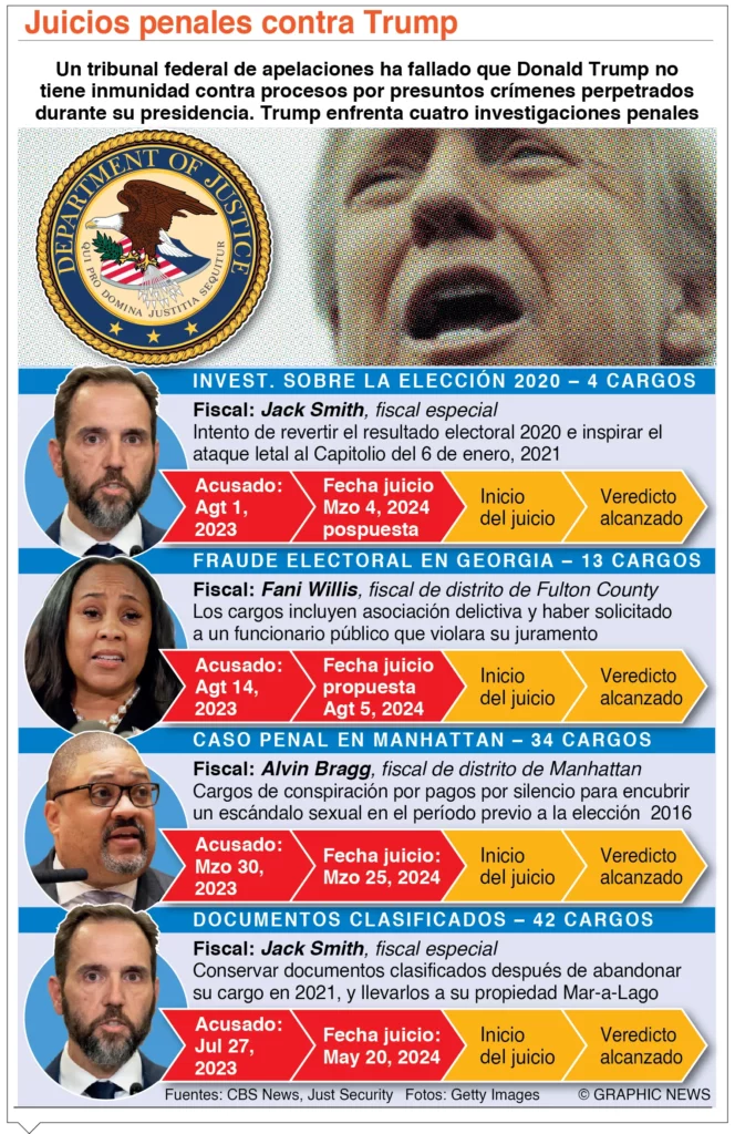 Estas son las claves de un caso que podría alterar las elecciones presidenciales del próximo noviembre, en las que el magnate neoyorquino es el gran favorito para hacerse con la nominación republicana y batirse de nuevo con el presidente, Joe Biden.