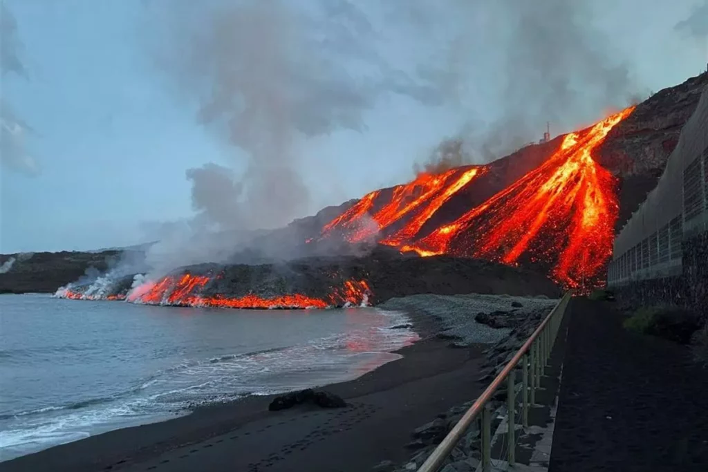 El delta de lava que empezó a formarse en la madrugada del miércoles con la llegada de una de las coladas procedentes del volcán de Cumbre Vieja al océano Atlántico ha engullido ya por completo la playa de Los Guirres por la que encontró su salida al mar Así lo confirman fuentes del Instituto Volcanológico de Canarias, que añaden que la lava amenaza además con sepultar un local de hostelería que hay en esa zona.