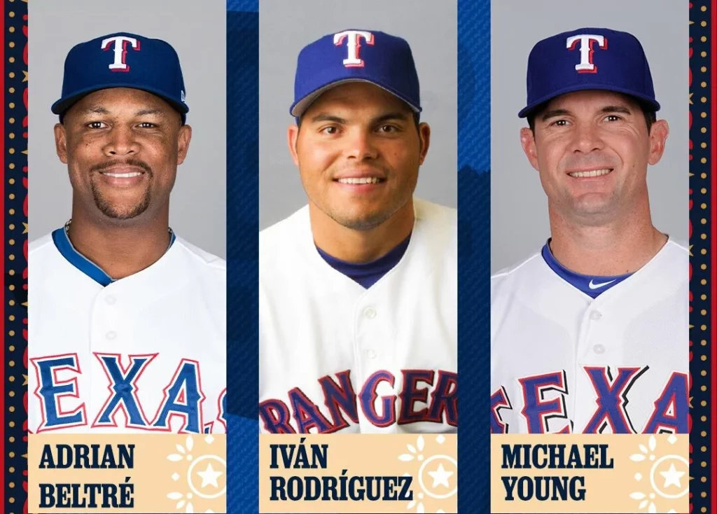 Rodríguez dejó su sello con el madero, al registrar 217 vuelacercas, con 842 empujadas y promedio al bate de .304, con el uniforme de los Rangers. Beltré, Rodríguez y Young, son miembros del Salón de la Fama de los Rangers, quienes retiraron los dorsales de las camisetas que portaban en su tiempo de juego con el equipo.