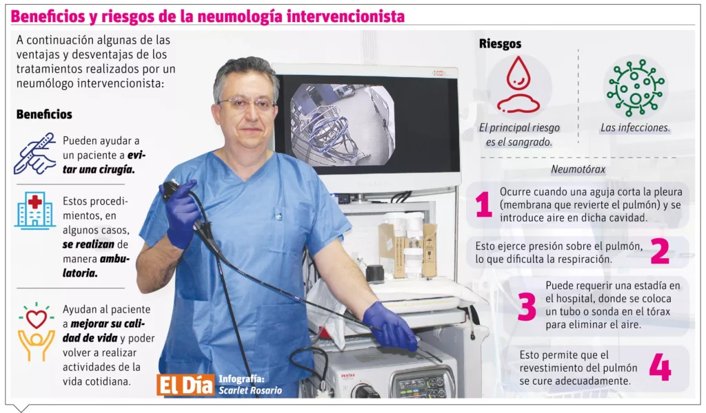Rosa Espinal Mercedes, neumóloga intervencionista de los Centros de Diagnóstico y Medicina Avanzada y de Conferencias Médicas y Telemedicina (Cedimat), explica que este es un campo nuevo, que incorpora los avances en técnicas endoscópicas, transtorácicas, percutáneas y de imágenes.