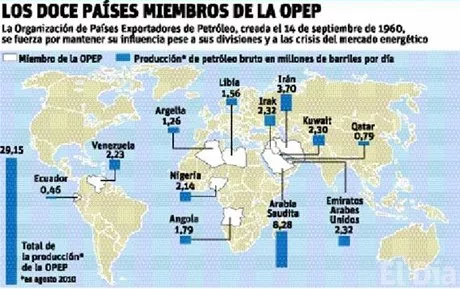 Pese a las diferencias demográficas y políticas que separan a Irán de Nigeria o a Argelia de Venezuela, un cemento común sella la coherencia de la organización: es la fuerte dependencia de todos sus miembros de los ingresos del petróleo, señala Francis Perris, director de la revista Petróleo y Gas Árabes.