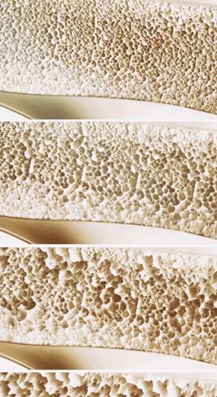 Consiste en un debilitamiento de los huesos que hace que se vuelvan más frágiles y porosos. Se produce por una disminución de la masa ósea y un deterioro de la microarquitectura del hueso.