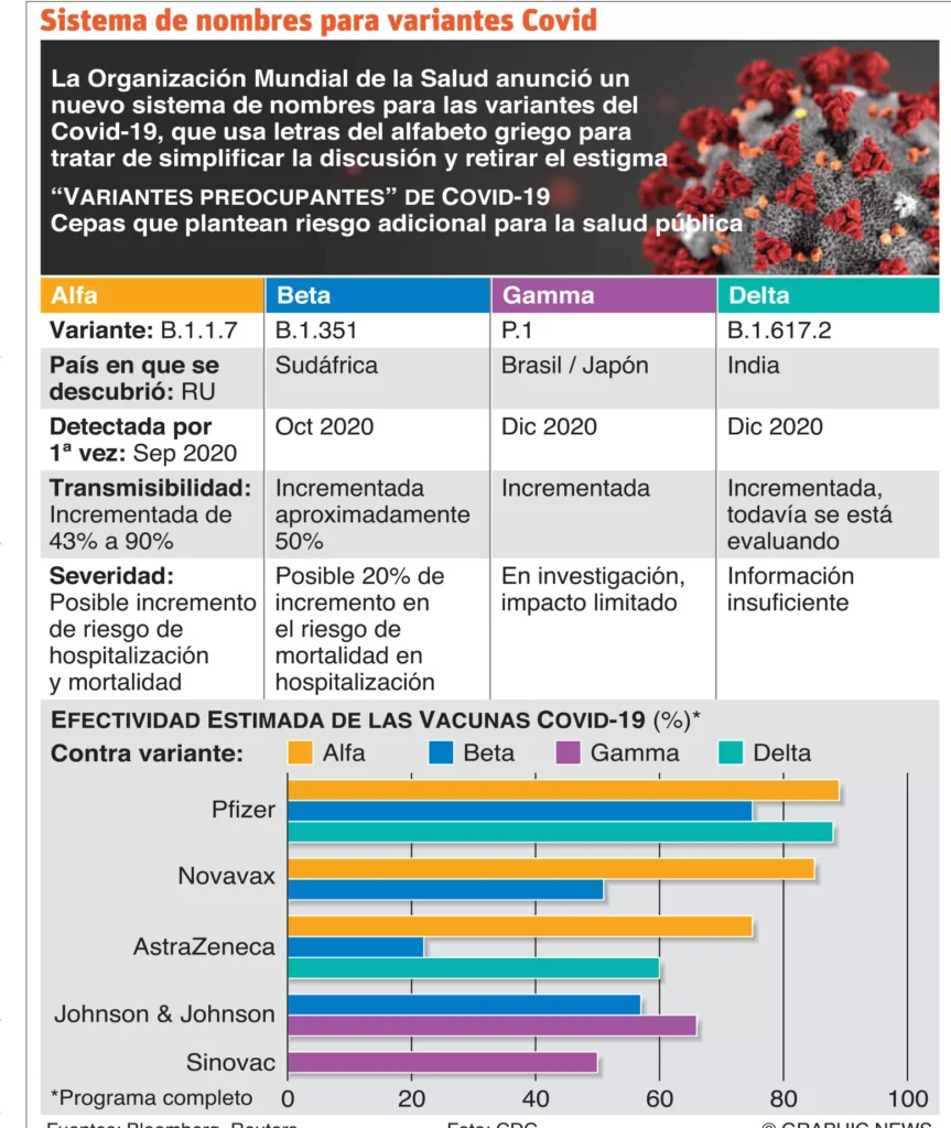 La OMS asignó nombres a las cuatro variantes del coronavirus.