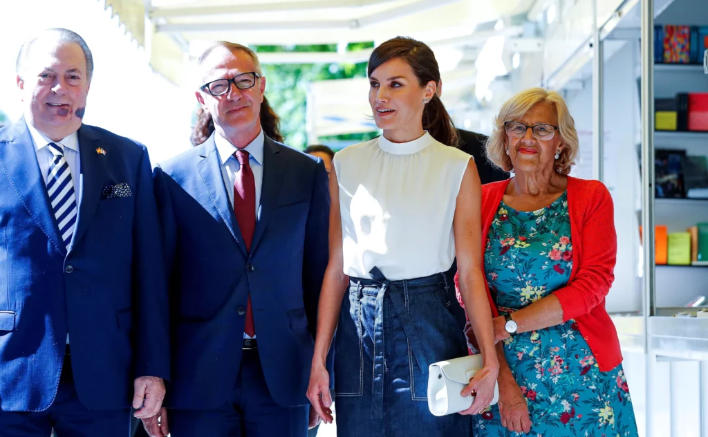 Durante más de una hora y media, la reina, acompañada por los ministros de Cultura de España y República Dominicana, José Guirao y Eduardo Selman, respectivamente; la alcaldesa de Madrid en funciones, Manuela Carmena; y el director de la FLM, Manuel Gil, entre otros, ha recorrido el Paseo de Coches del Retiro de la capital española que acoge hasta el próximo 16 de junio un total de 361 casetas.