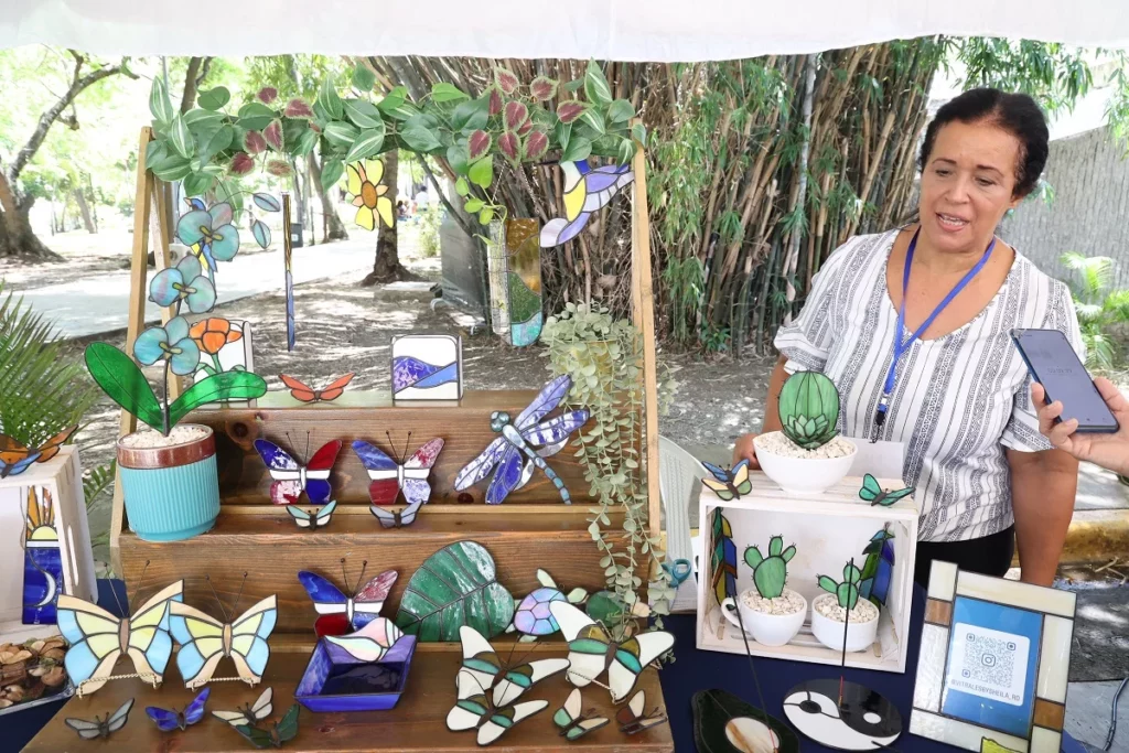 Por su parte, Sheila Hernández aprovecha los residuos de vidrio para transformarlos en vitrales que antes se limitaban a transmitir mensajes bíblicos en las iglesias. Hoy, esas piezas se convierten en coloridas figuras como mariposas, flores y otros detalles decorativos para el hogar.