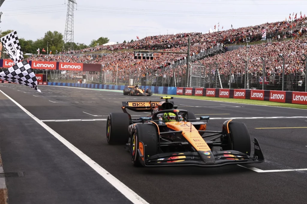 Lando Norris contuvo a su compañero de equipo en McLaren, Oscar Piastri, en un tenso final para ganar el Gran Premio de Hungría el domingo y aumentar sus posibilidades de ganar el título de Fórmula 1 de cara al receso de mitad de temporada.