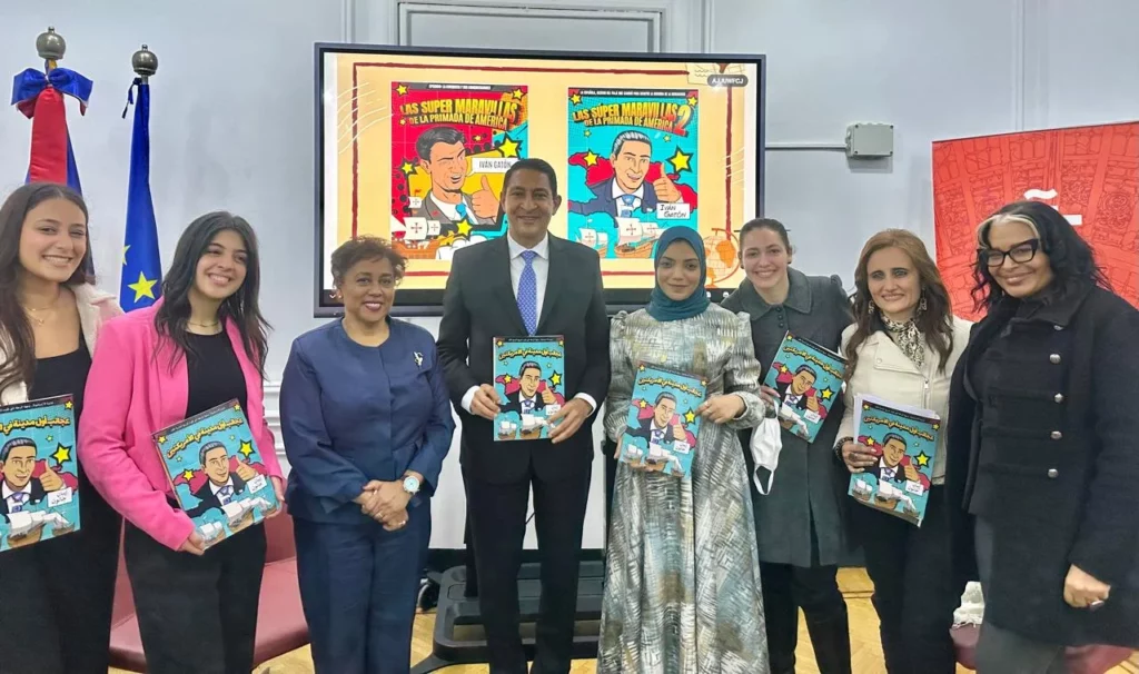 La Embajada de República Dominicana en Egipto, en colaboracion con el Instituto Cervantes de El Cairo, realizó el lanzamiento del Cómic " Las Súper Maravillas de la Primada de América", del profesor Iván Gatón, en lengua árabe.