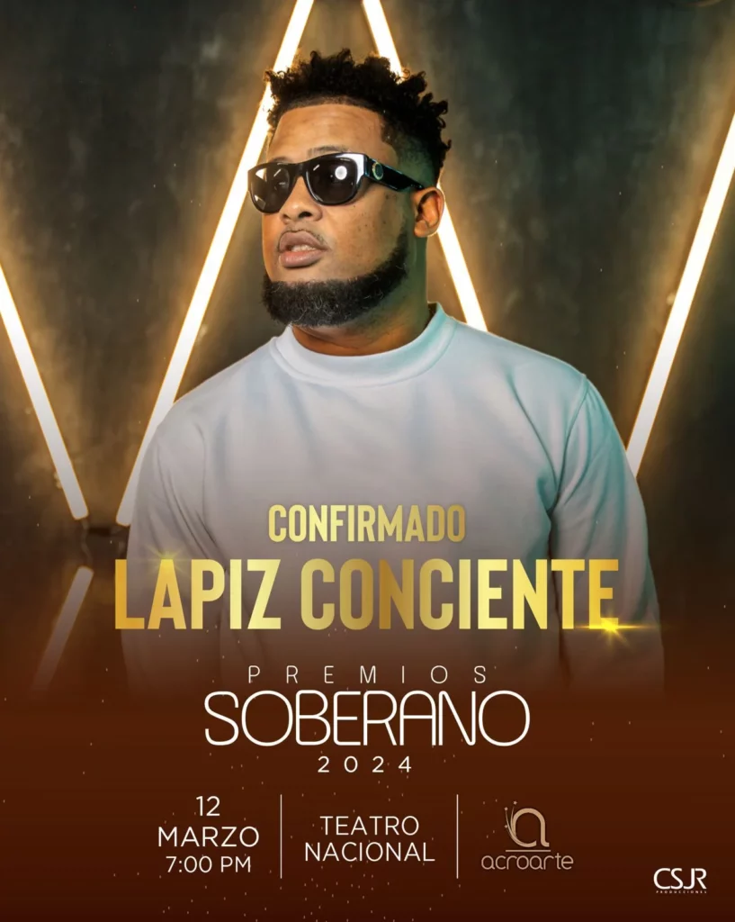 Santo Domingo.– Premios Soberano abrazó desde su creación en 1985 las principales manifestaciones musicales. En un principio estuvo el merengue, luego la música típica, posteriormente la bachata, la salsa y, como último en llegar, pero no menos populares, los ritmos urbanos. Y en esta 39ª edición actuará, por primera vez en su exitosa carrera, Lápiz Conciente.