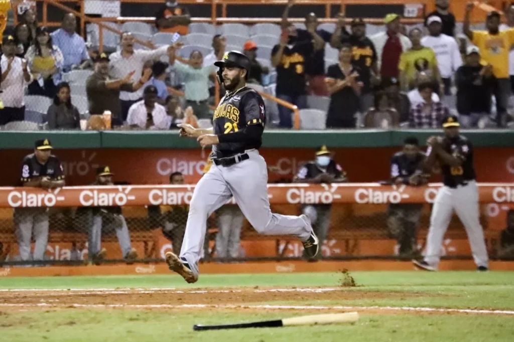 Juan Carlos Pérez bateó sencillo al prado derecho para llenar las almohadillas y preparar el escenario para que Leody Taveras conectara sencillo impulsador de dos al prado derecho para igualar la pizarra, dejando corredores en tercera y primera.