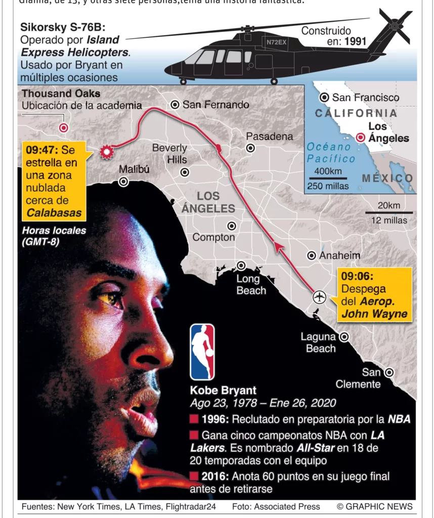 LOS ÁNGELES.-La numerosa comunidad latina de Los Ángeles llora este lunes la muerte de la estrella de baloncesto Kobe Bryant con la pena propia de cuando se trata de un familiar cercano, dado el cariño mutuo patente y que quedó reflejado cuando el jugador de los Lakers aprendió a hablar español.