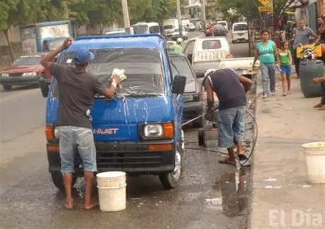 Santo Domingo.-Lavadores informales de carros de distintas partes de la Capital están conscientes de que hay que economizar el agua por la sequía que afecta al país, pero rechazan la medida de las autoridades de cerrar definitivamente sus negocios, alegando que mantienen a su familia con su trabajo.