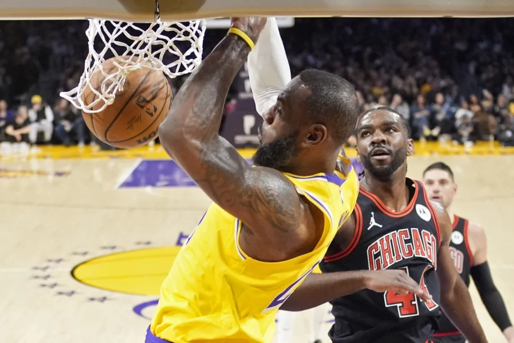 LeBron James anotó 25 puntos y 12 asistencias unas horas después de ser incluido en su vigésimo equipo All-Star de la NBA, un récord, y Los Angeles Lakers vencieron a los Chicago Bulls 141-132 el jueves por la noche.