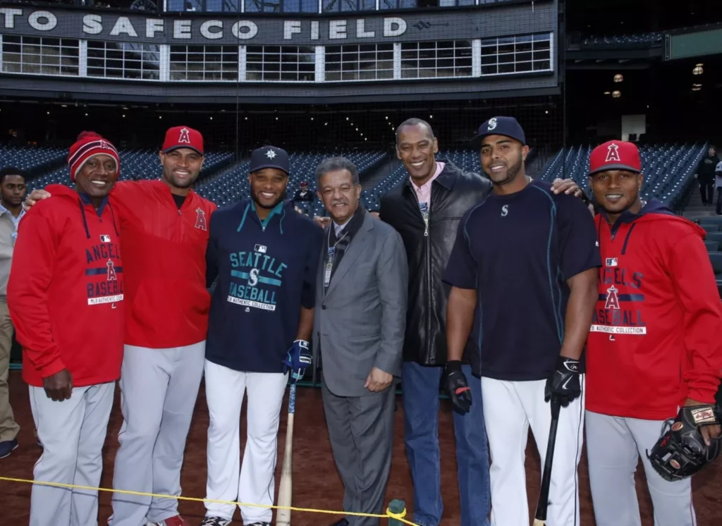 Seattle.-Apegado al lema de Don Bosco de que “solo me basta que sean jóvenes para amarlos”, el expresidente Leonel Fernández compartió con los jugadores dominicanos Robinson Canó, Nelson Cruz y Fernando Rodney, de Seattle, y Albert Pujols, Erick Aybar y el coach Alfredo Griffin de los Angels. Fernández, quien realizó el lanzamiento de honor, previo al juego del martes entre los Angels y los Marineros, también compartió con el propietario y presidente de los Marineros, Kevin Mather, y el ejecutivo Howard Lincoln.