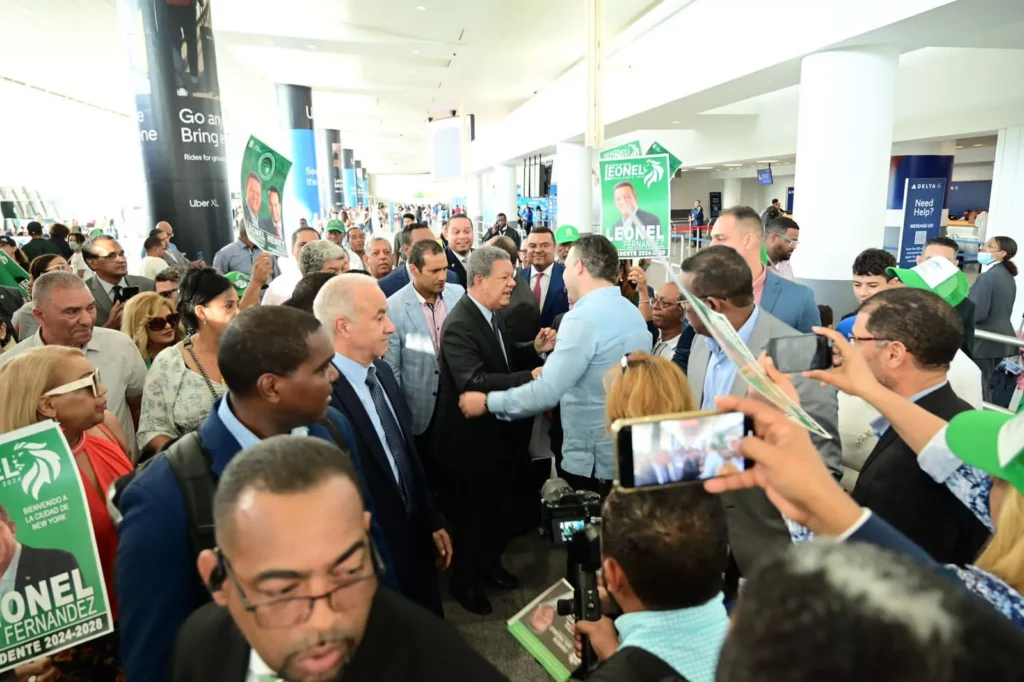 Como en cada visita a la ciudad de mayor concentración de dominicanos en el exterior, Leonel Fernández fue recibido en el aeropuerto por decenas de seguidores, a quienes se sumaron otros dominicanos y dominicanas que se sorprendieron al ver al expresidente dominicano allí y se acercaron a saludarle y expresar su admiración y respaldo.