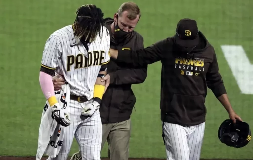 Tatis Jr. se golpeó bateando ante Anthony DeSclafani y cayó al suelo con una mueca de dolor. Se agarró el brazo izquierdo al levantarse y el manager de San Diego, Jayce Tingler, y otro técnico le asistieron para sostenerlo contra su cuerpo mientras lo ayudaban a salir del diamante.
