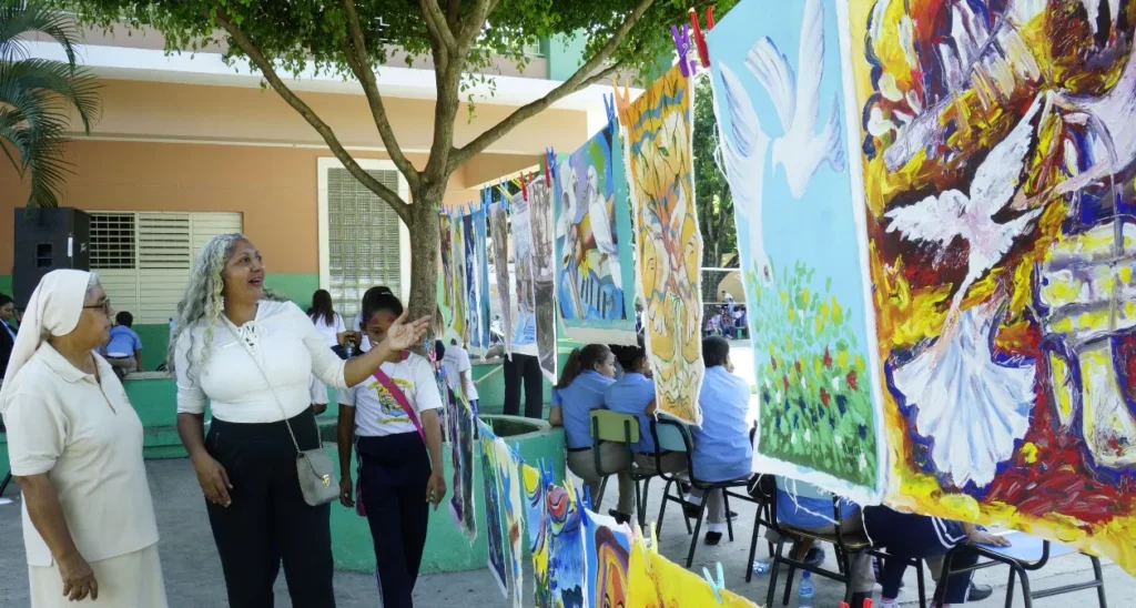 La pintura, que era realizada en un ambiente de música y la algarabía de los estudiantes, es parte del proyecto “Lienzos sueltos por la paz” es un proyecto de arte público colectivo cuyo objetivo es crear a través de las artes plásticas, el teatro, la danza, la música, la poesía, el folclore, el muralismo y el baile, un cambio de mentalidad y conciencia sobre la paz en República Dominicana y en todo el mundo.