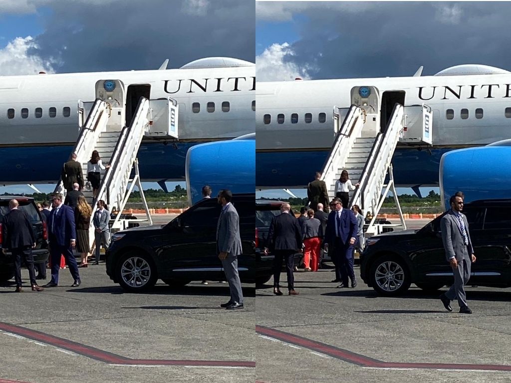 Un estricto protocolo de seguridad se ha dispuesto en la terminal, donde es recibido el funcionario norteamericano, quien llegó acompañado de su esposa, Jennifer Hegseth.