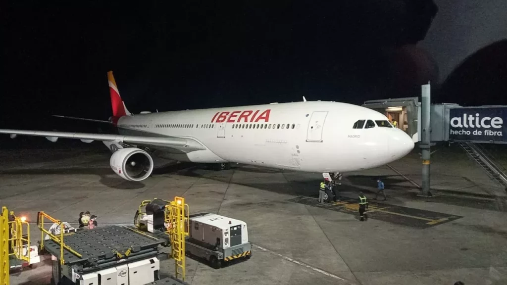 SANTO DOMIGO.- Arribó hace unos minutos en el Aeropuerto Internacional de las Américas el avión de la aerolinea Iberia con las primeras dosis de vacunas contra el Covid-19.