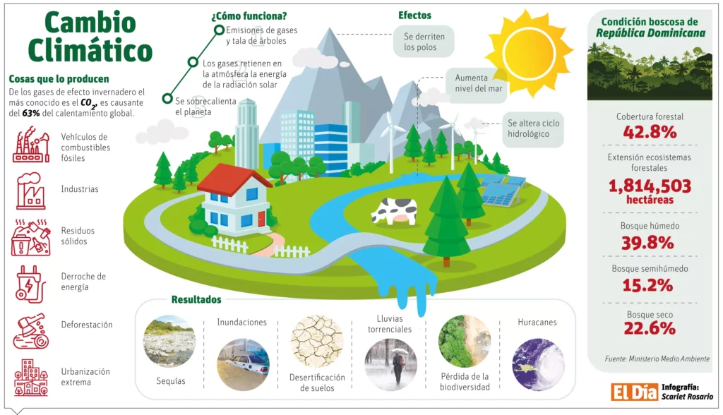 “Disminuye la capacidad de absorción y se aumenta la evaporación lo que cambia el perfil del flujo de ríos, arroyos y cañadas. Muy pocos espacios dominicanos conservan la capacidad natural de resistir lluvias torrenciales y de mantener flujos continuos durante las sequías estacionales”, dijo Martínez.
