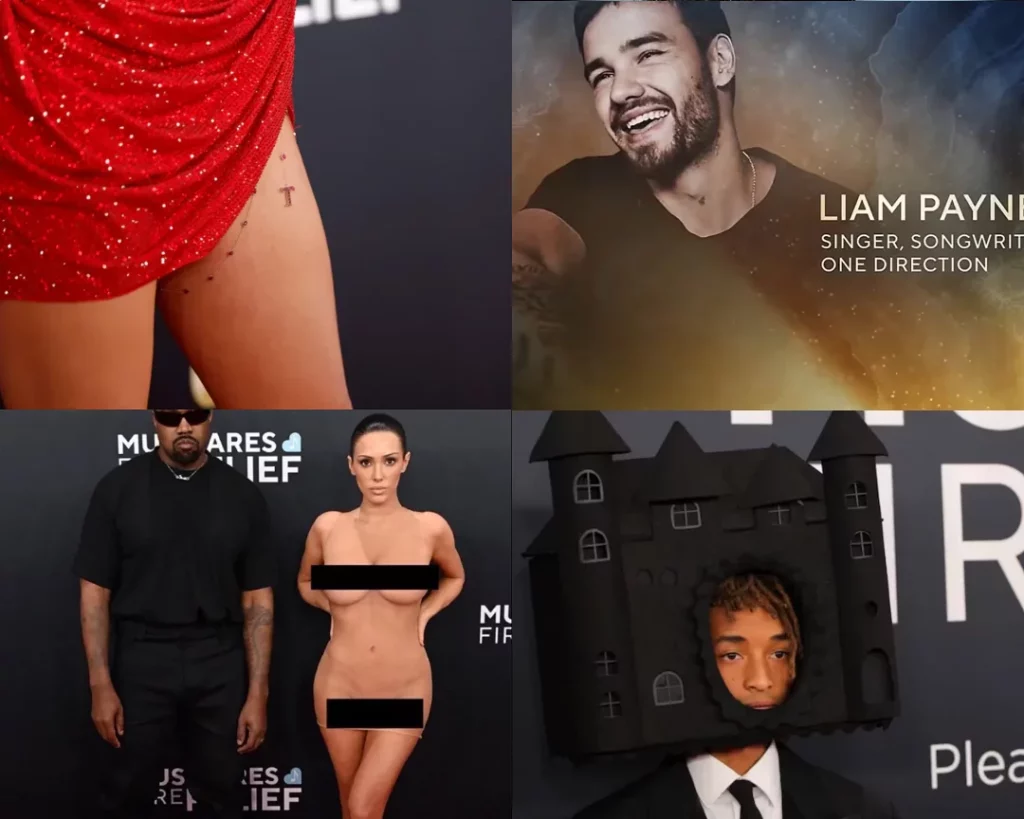 Ambos llegaron a la alfombra roja luciendo una vestimenta a juego de color negro: Kanye con una camiseta y pantalones oscuros, además de unos lentes de sol; y Bianca con un abrigo chic que se quitó a los segundos para mostrar un vestido transparente que la dejó prácticamente al desnudo ante los fotógrafos y los presentes en el evento.